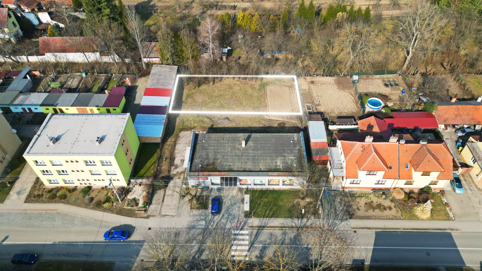 Pozemek je velmi dobře přístupný z ulice Nádražní a nachází se za prodejnou COOP Jednota, v klidné lokalitě v blízkosti Klobouckého potoka.